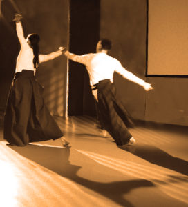 La ricerca è e continua ad essere verso la conciliazione di queste forze, ho trovato diversi spunti in questa bellissima arte marziale, che pratico da quasi 30 anni, e li ho combinati con la danza creando una metodologia di lavoro che usa i principi di base dell’Aikido.