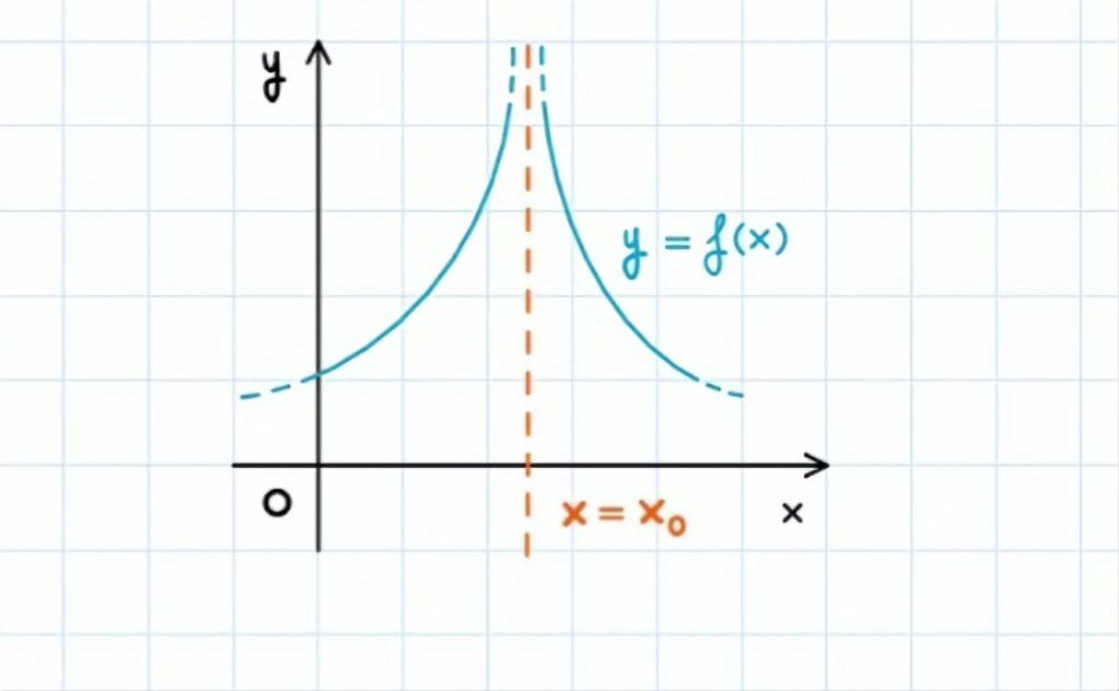 《Un asintoto verticale, ossia una retta immaginaria dove la quale la funzione non può esistere》