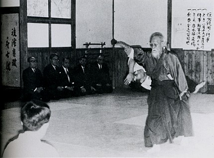 Questi lo incoraggiò a seguire la sua vocazione marziale, e nel 1925 il capitano della squadra di judo della università Waseda di Tokyo, Nishimura, si recò ad Ayabe per incontrarlo, rimanendo colpito dalla sua tecnica straordinaria. Nell’autunno l’ammiraglio Isamu Takeshita invitó Ueshiba a Tokyo per tenere una dimostrazione dell’ex primo ministro Gombei Yamamoto.