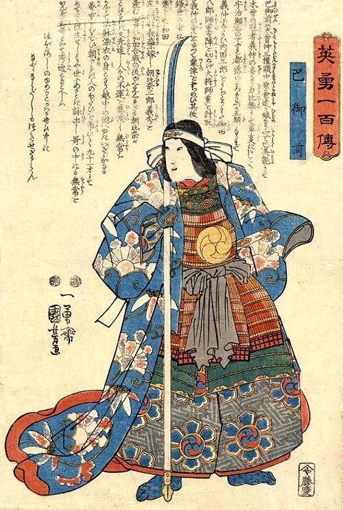 Utagawa Kuniyoshi: Tomoe Gozen, armata di naginata